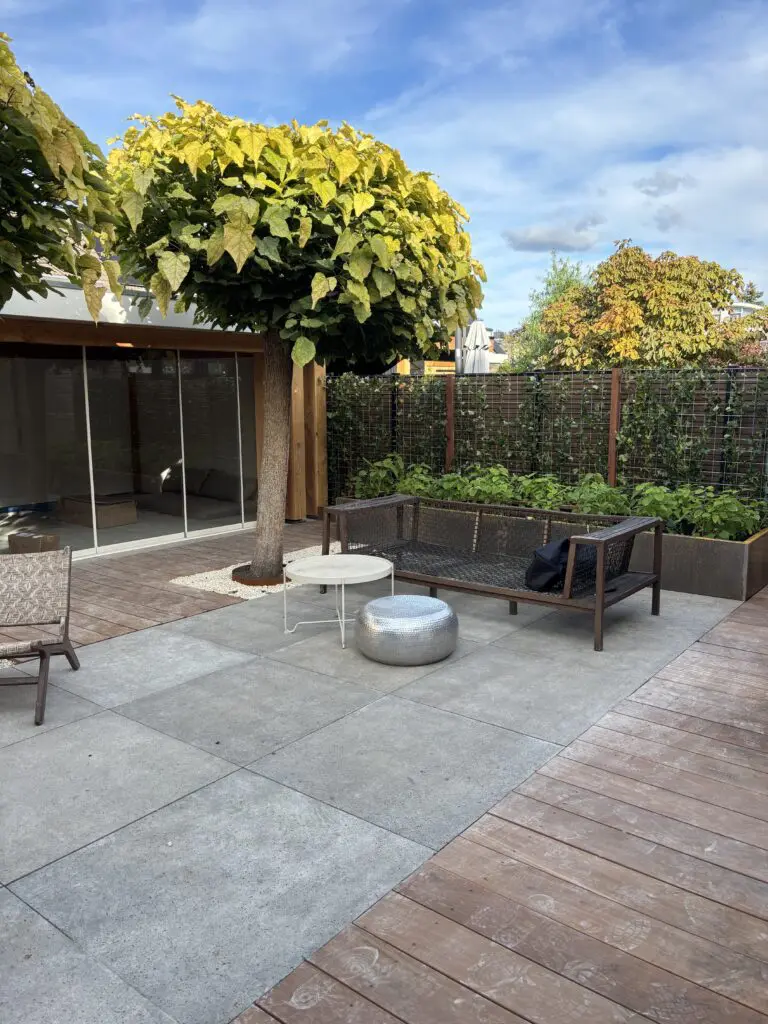 In dit project hebben we een tuin volledig gerenoveerd, waarbij verouderde elementen plaatsmaakten voor een moderne, functionele en sfeervolle buitenruimte. De oude schuur en beplanting waren verouderd en pasten niet meer bij de wensen van de klant.